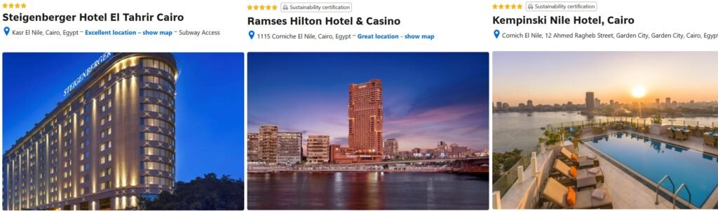 There are a lot of 4 or 5 star hotels in Cairo, these are 3 hotels where location and reviews are telling us they could be perfect for a pleasant stay, but choose one that suits you better: